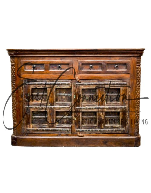 The furniture is made from Original Old Indian Antique Doors and Reclaimed Timber which makes it eco-friendly and gives it a distinct character. A Very practical piece of furniture with plenty of storage space to keep items tidy.